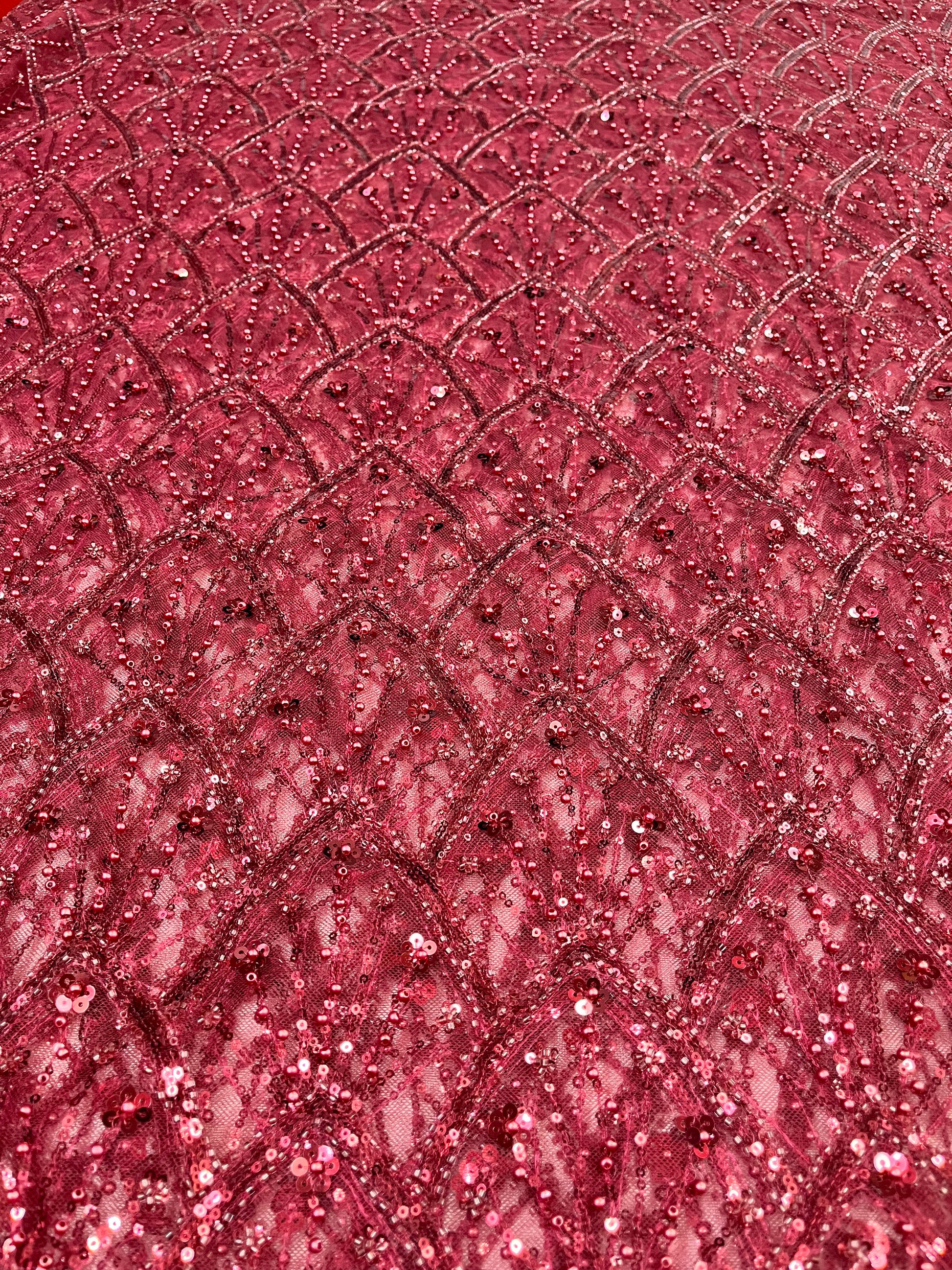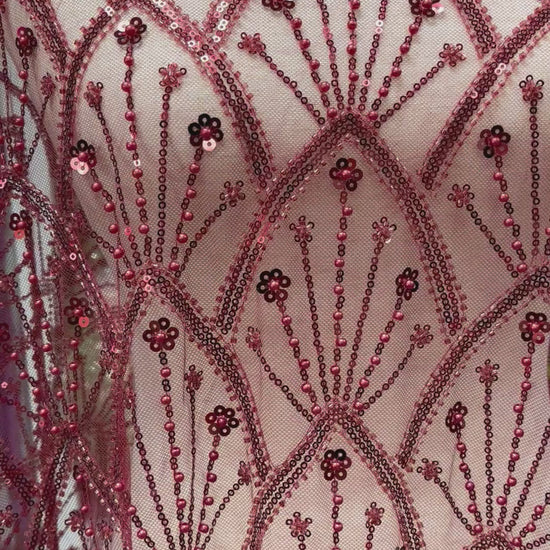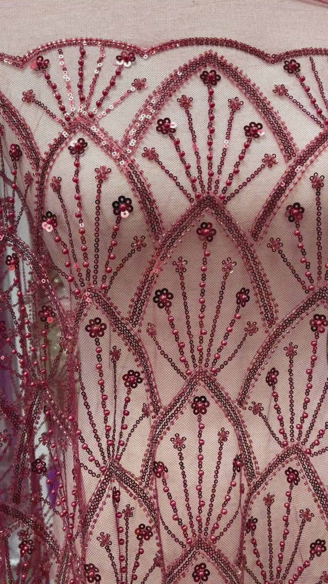 Luxury Burgundy Beaded Lace Fabric Premium Sequins Hand-Beaded Mesh