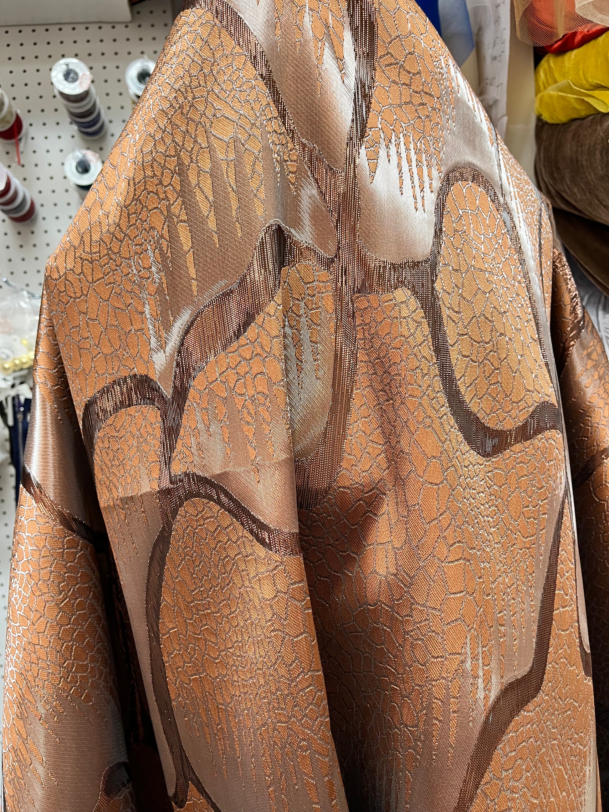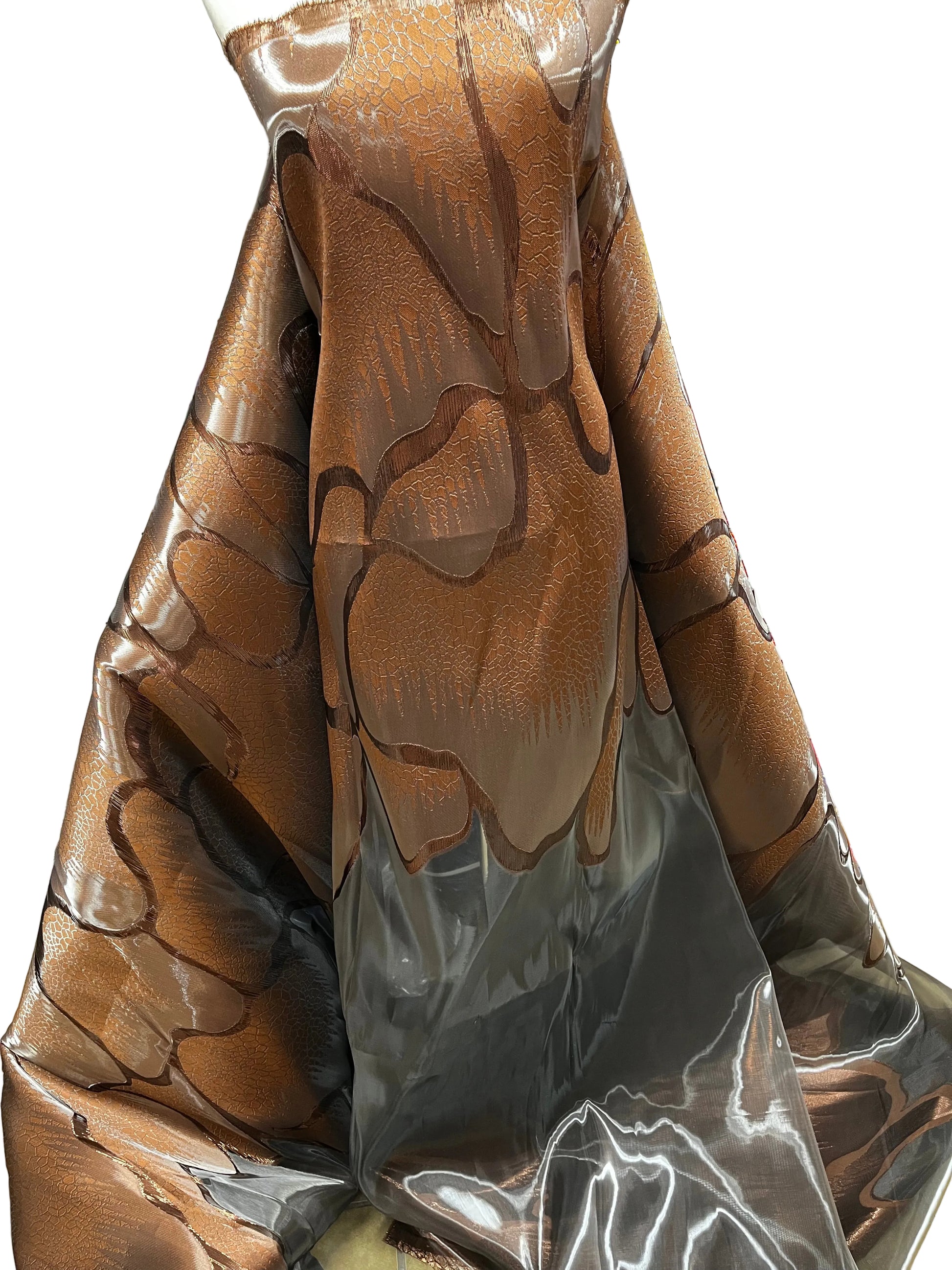 Elevate your designs with our luxury liquid r organza brocade fabric, a premium material known for its rich color, glossy finish, and elegant texture. This 60-inch wide organza brocade features a beautiful woven pattern on a sheer base, giving it a unique balance of structure and lightness.